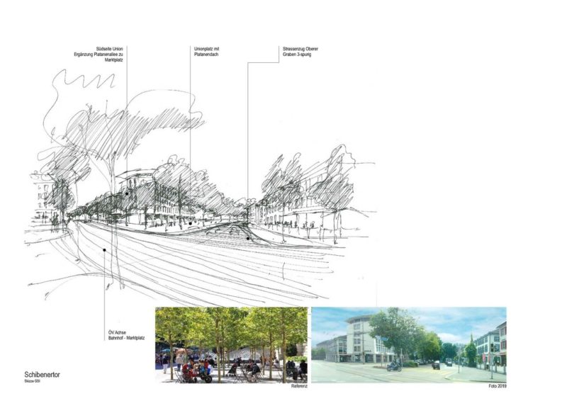 Am St.Galler Schibenertor und Oberen Graben entsteht durch die nicht mehr genutzte Busspur Platz. GSI Architekten AG und der Heimatschutz St.Gallen/Appenzell I.Rh. schlagen vor, 90 neue Stadtbäume zu pflanzen.