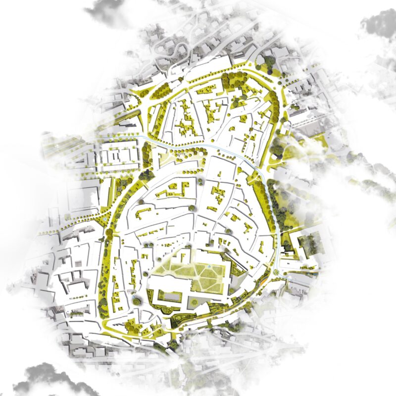 Städtebauliche Studie: Baumboulevard am historischen Stadtgraben
