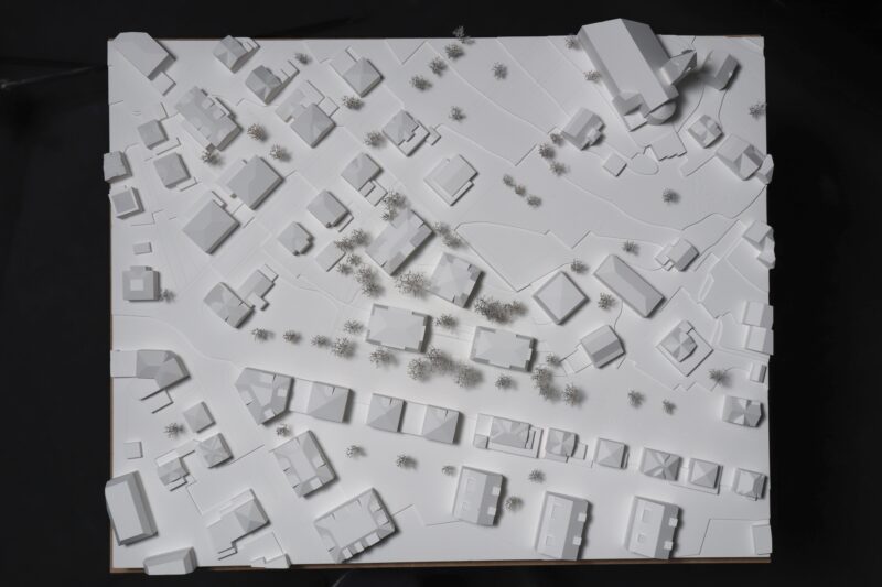 Der bauliche Schwerpunkt von Bütschwil rund um die katholische Kirche erfährt aufgrund neuer Wegverbindungen und freibleibenden Blickachsen eine Aufwertung. Das neuralgische Grundstück trägt so massgebend zur Vernetzung der südlichen und nördlichen Dorfbereiche bei.
