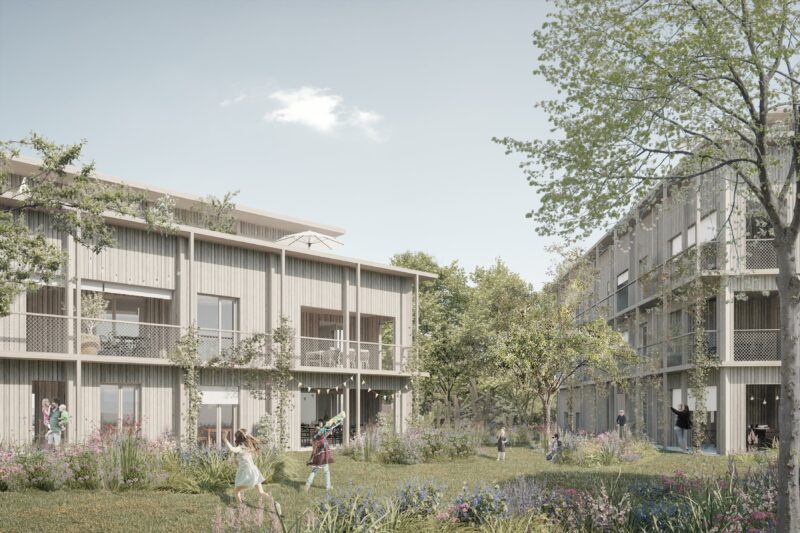 Alle Wohnungen erhalten attraktive und grosszügige Aussenräume, die unterschiedlich ausgerichtet sind. Mit dem lokal verankerten, ökologischen und vielfältigen Material Holz fügt sich die Fassade harmonisch in die Umgebung ein und entspricht dem Grundsatz nachhaltigen Bauens. Das Vorpatinieren der Holzoberfläche sichert einen kontrollierten und gleichmässigen Alterungsprozess und lässt das Holz natürlich wirken.